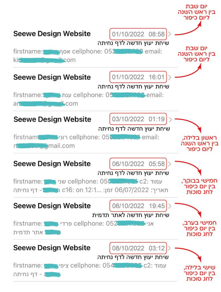 כולן התקבלו דרך דפי הנחיתה שעובדים בשבילי 24/7 ביממה